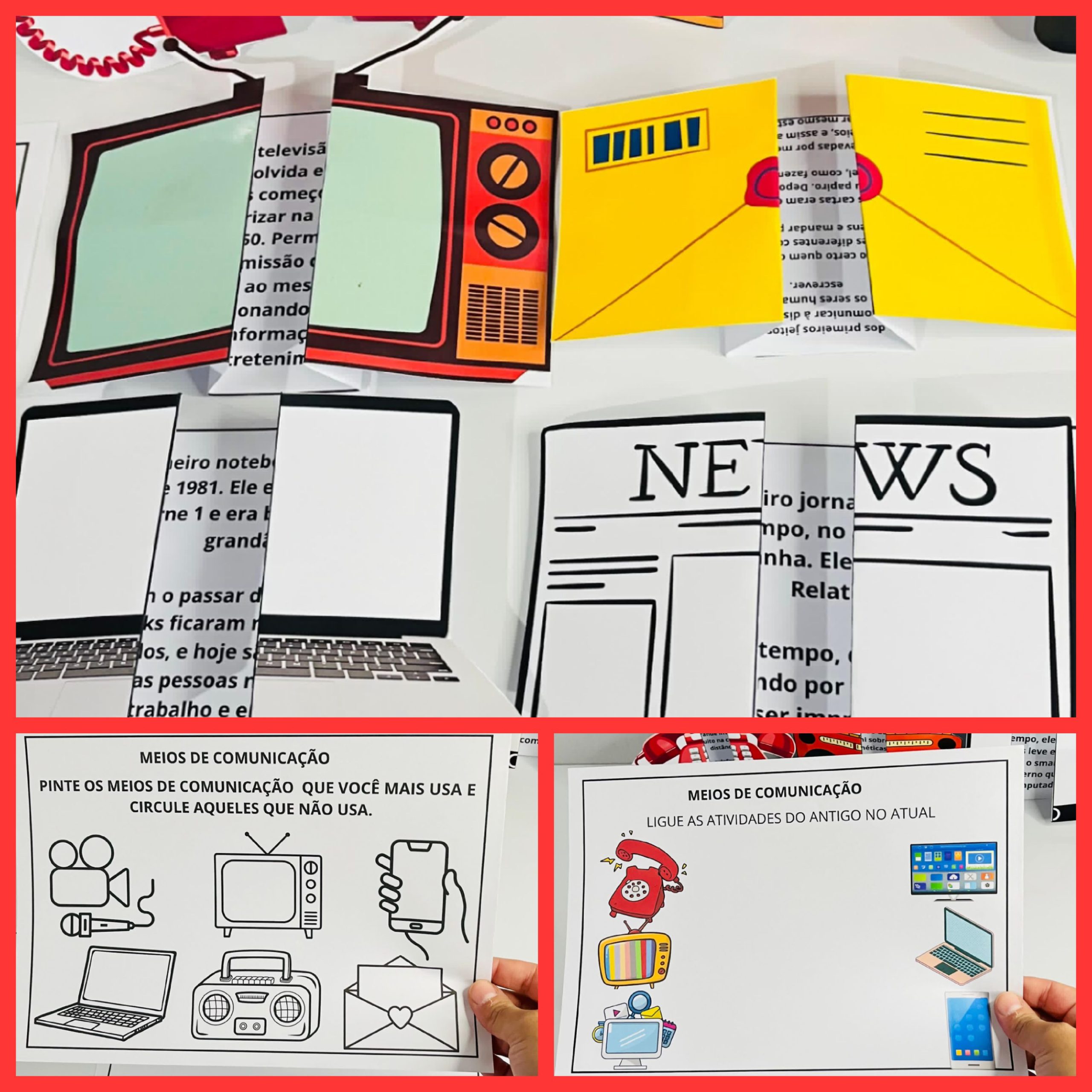 Profs olha esse material incrível sobre meios de comunicação 📱📺📻 Super visual, lúdico e pronto pra imprimir! ✅ Ideal pra trabalhar com os pequenos de forma divertida; ✅ Ótimo pra projetos e sequências didáticas; ✅️ O arquivo acompanha 3 folhas de atividades.