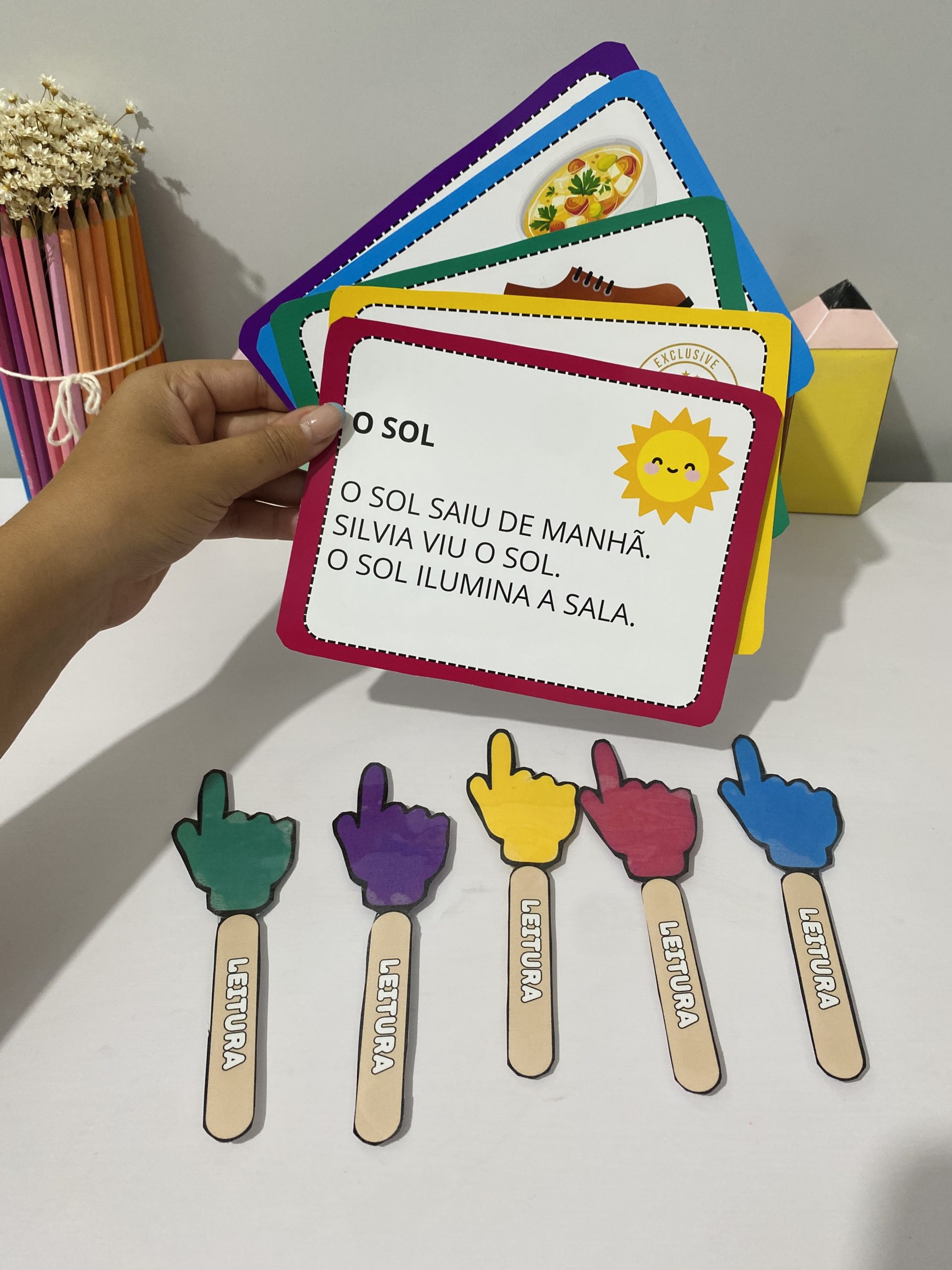 📚 Palitinho da Leitura Um recurso pedagógico simples e muito eficaz para auxiliar as crianças no processo de alfabetização! Os palitinhos coloridos servem como guia visual, ajudando a criança a se localizar durante a leitura e evitando que ela se perca nas linhas do texto. ✨ Benefícios: Favorece a concentração e o acompanhamento da leitura. Estimula a autonomia da criança ao ler. Pode ser usado tanto em sala de aula quanto em casa. Material reutilizável e de fácil aplicação. 🎁 Bônus especial: junto com os palitinhos, a professora também recebe fichas de leitura prontas, para trabalhar com os alunos de forma prática e divertida.