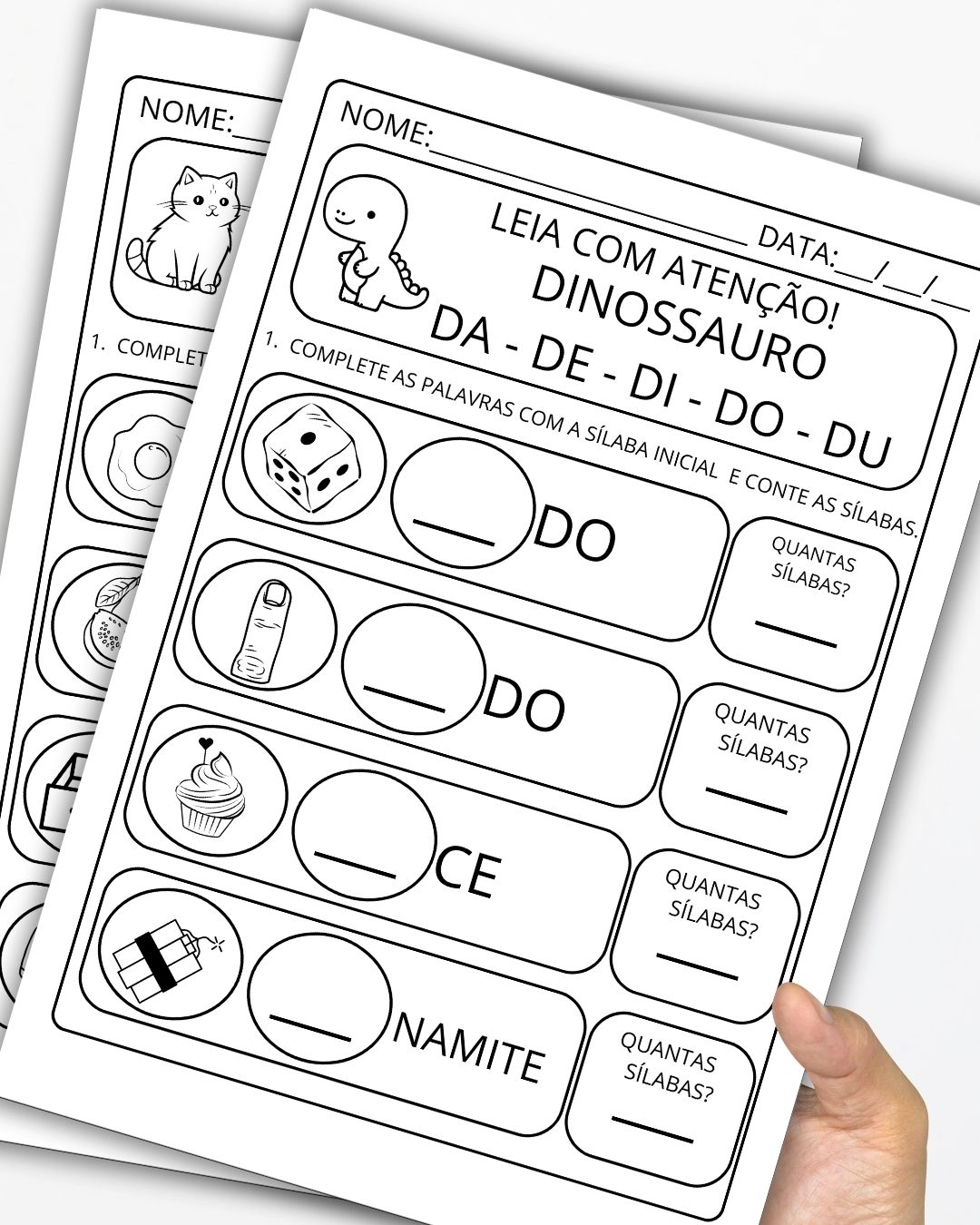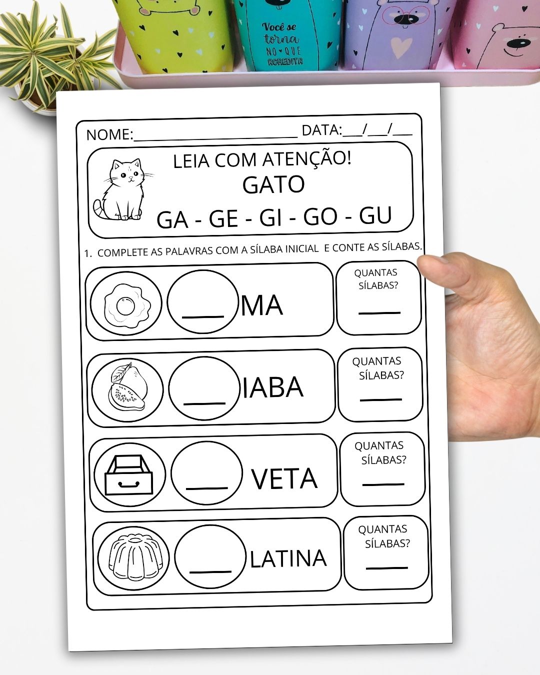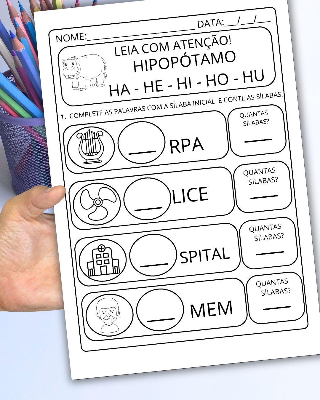 Este arquivo em PDF, com 21 páginas prontas para imprimir, é perfeito para pais e professores que desejam apoiar as crianças na fase de alfabetização! 📝 🔠 A atividade envolve completar palavras com a sílaba inicial e contar o número de sílabas, ajudando os pequenos a desenvolverem habilidades fonológicas de forma eficaz. 🎯 Ideal para sala de aula, reforço escolar ou atividades em casa. 🏠 📦 Formato: PDF para imprimir ✨ 👉 Adquira agora e transforme o aprendizado das crianças!