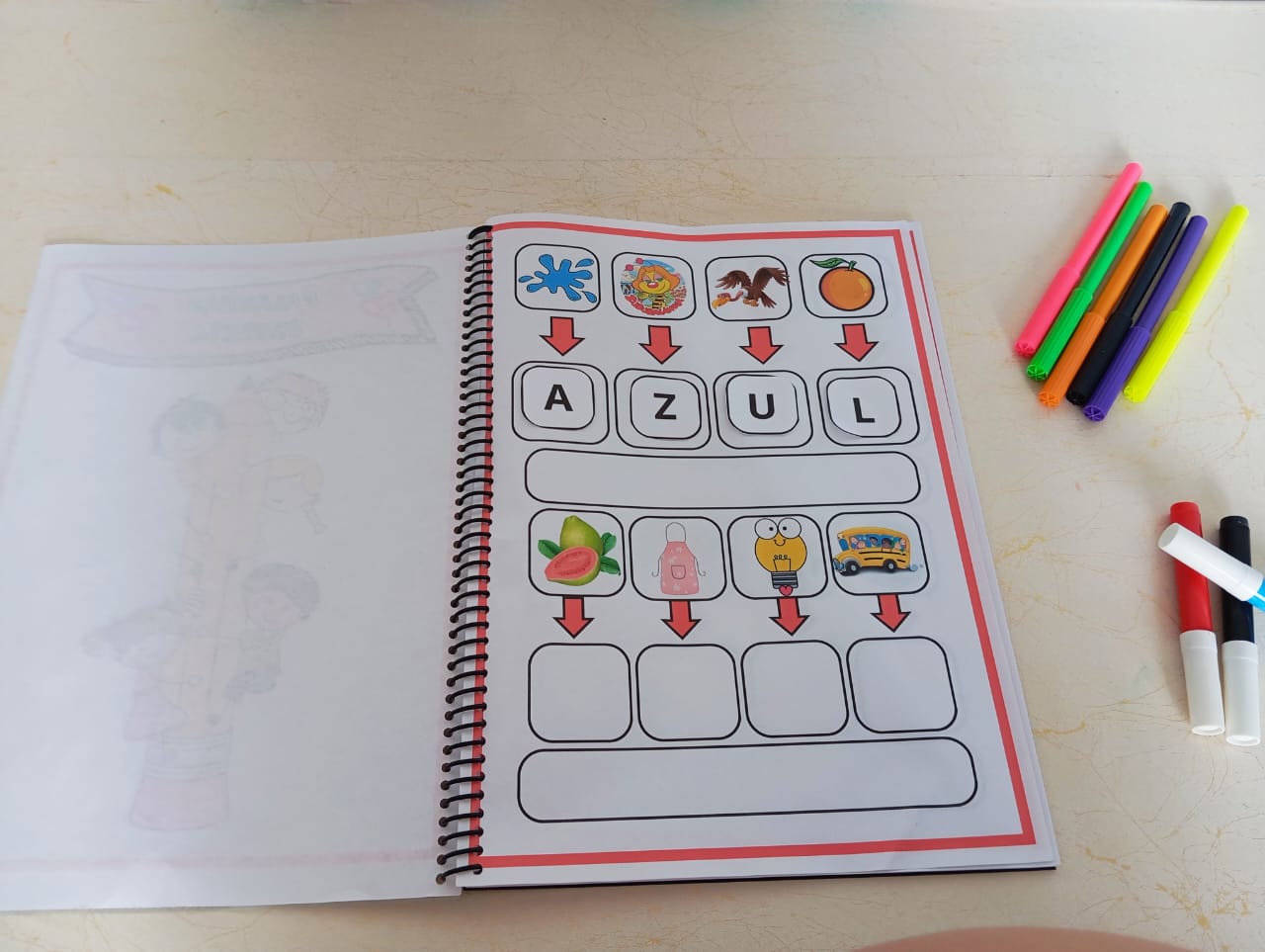 Auxiliar no desenvolvimento da alfabetização das crianças por meio de atividades que incentivam a identificação de letras iniciais, formação de palavras e compreensão da relação entre imagem e escrita.