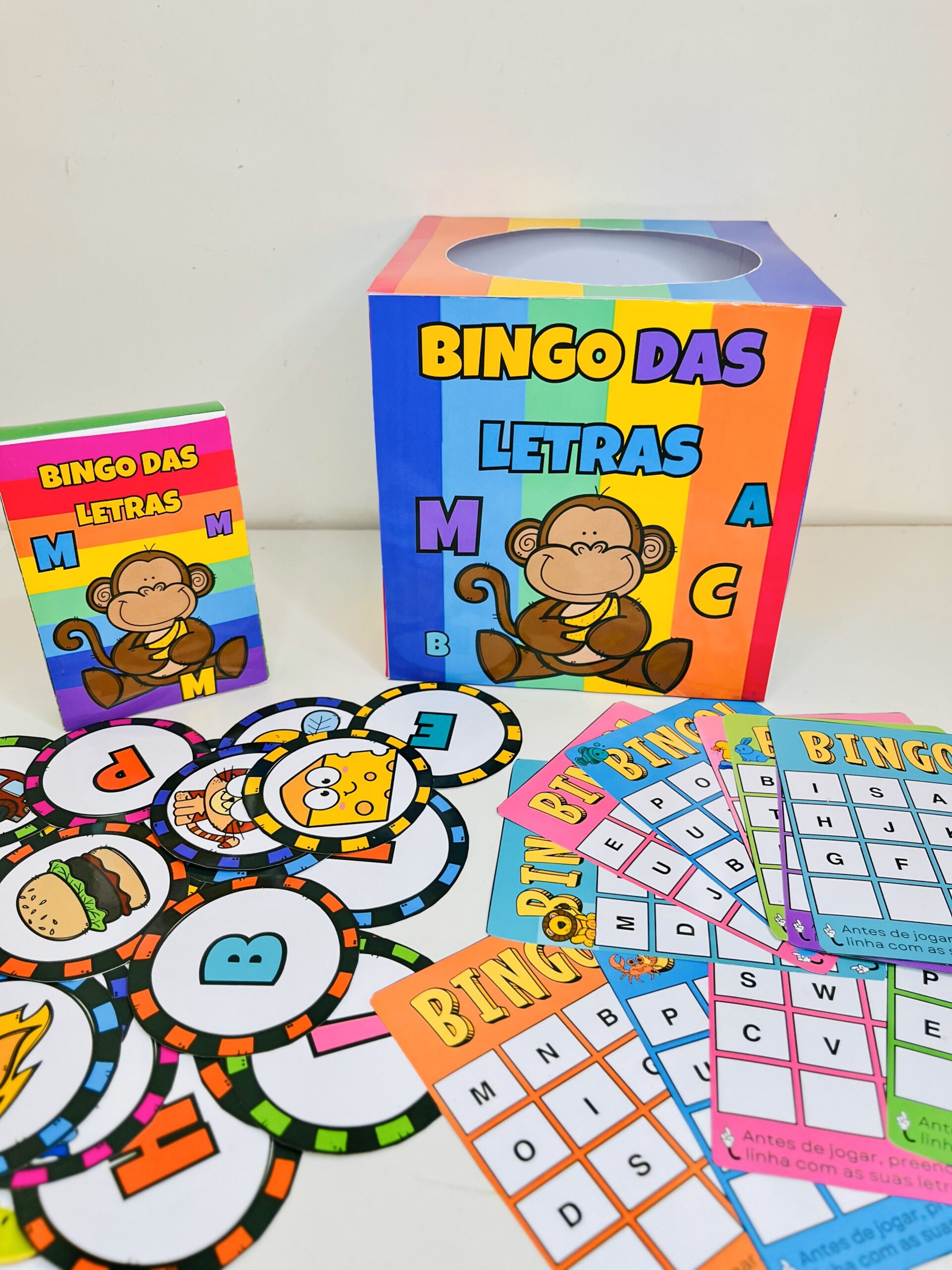 O Bingo das Letras é uma maneira divertida e eficaz de reforçar a alfabetização. Com caixinhas para fichas, cards de letras e cards de imagens, as crianças aprendem a associar sons e letras enquanto jogam! Por que é importante? • Estimula a consciência fonológica e o reconhecimento de letras. • Melhora a atenção e o raciocínio de forma lúdica.