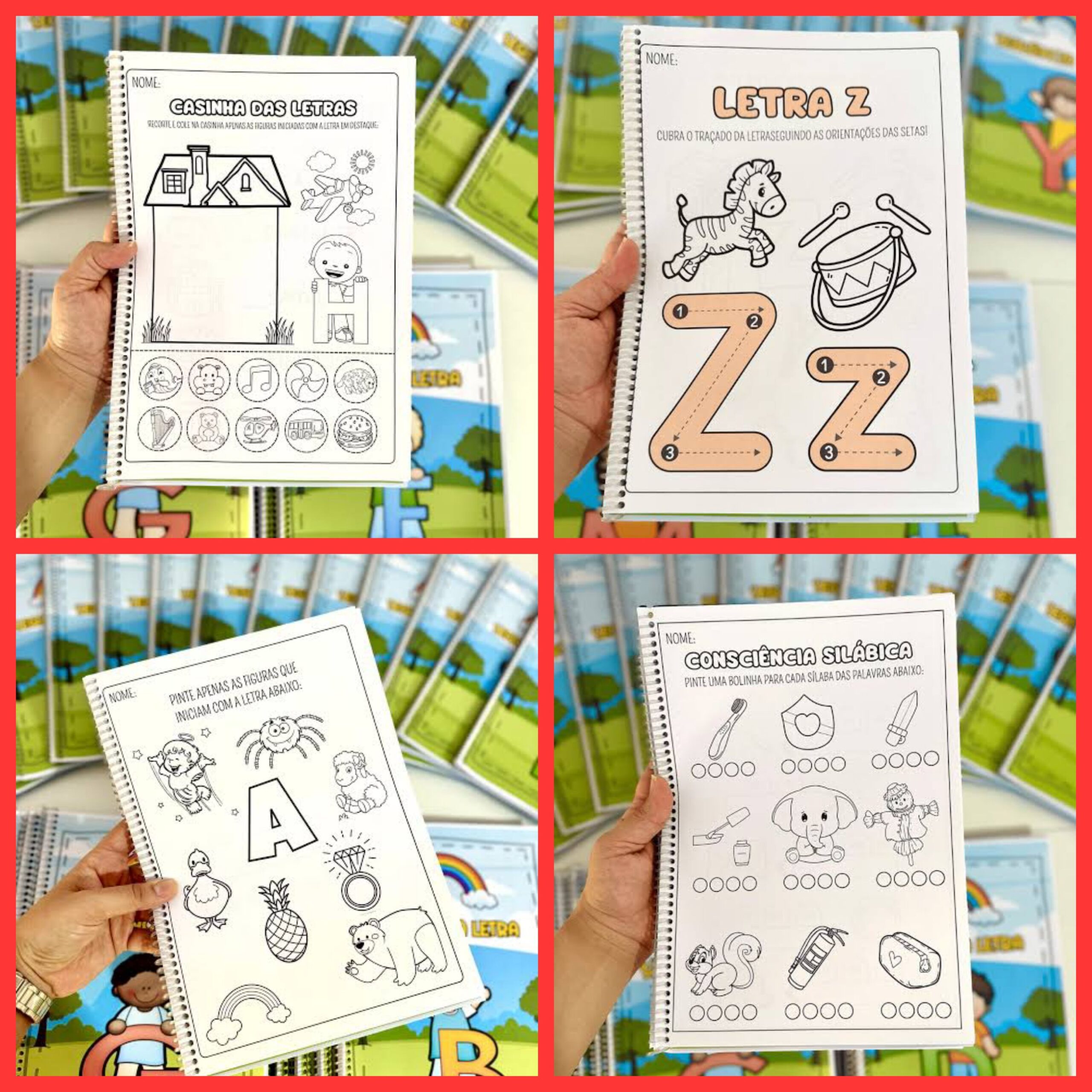 Kit com 26 Apostilas de atividades e recursos para trabalhar as letras do Alfabeto com crianças em fase de alfabetização. 🤩 No total são 24 páginas de atividades em cada apostila, somando mais de 600 páginas de atividades. O material inclui diversas sugestões para desenvolver habilidades e conceitos importantes para essa faixa etária. Os conteúdos abordados são: 📍Traçado das letras 📍Recorte e colagem 📍Figuras que iniciam com cada letra 📍Pintura 📍Coordenação motora fina 📍Som das letras 📍Desenho 📍Consciência silábica 📍Consciência fonêmica 📍Completar as palavras com as sílabas das famílias silábicas 📍Ordenação de sílabas 📍Escrita das palavras iniciadas com cada letra 📍Montar palavras recortando e colando as sílabas 📍Atividade de recorte e colagem de figuras, nas opções coloridas e para colorir 📍Quebra-cabeça colorido e para colorir 📍Coroa de cada letra para colorir 📍Relógio de cada letra para colorir 🖨️ O arquivo vai em PDF pronto para impressão.