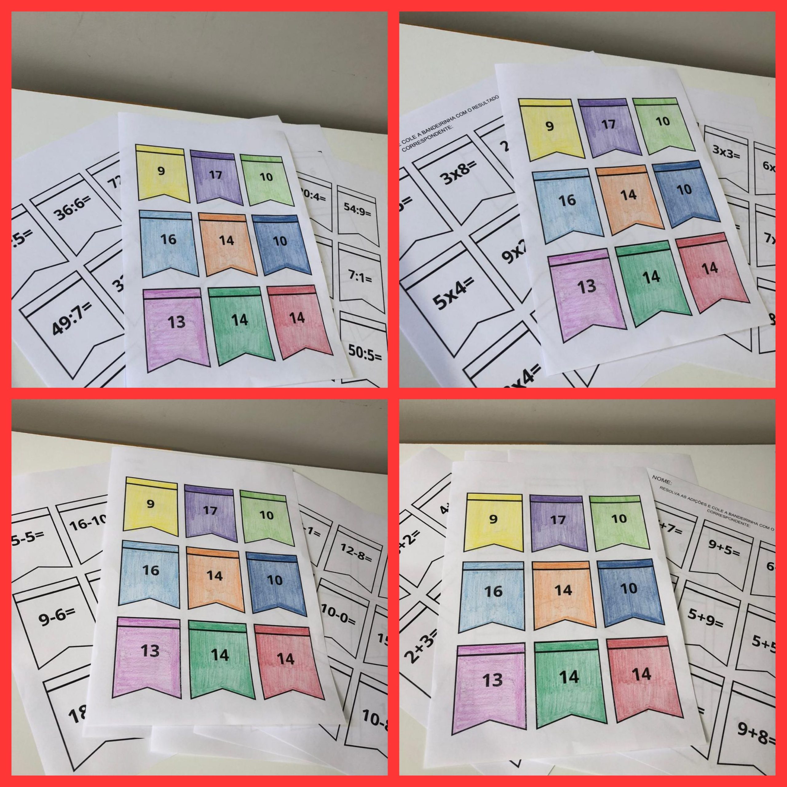 🎉📚 Combo Bandeirinhas das 4 Operações! Transforme sua aula em uma verdadeira festa com esse combo de atividades das 4 operações em modelos de bandeirinhas de festa junina! 🏳️➕➖✖️➗ Aprender matemática nunca foi tão divertido!