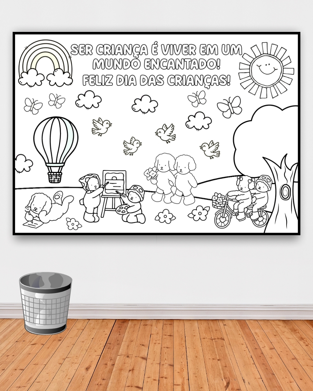 ✨ Ser criança é transformar qualquer momento em felicidade! ✨ 🎨 Apresentamos o lindo painel para colorir: uma atividade divertida, criativa e cheia de cores para os pequenos!