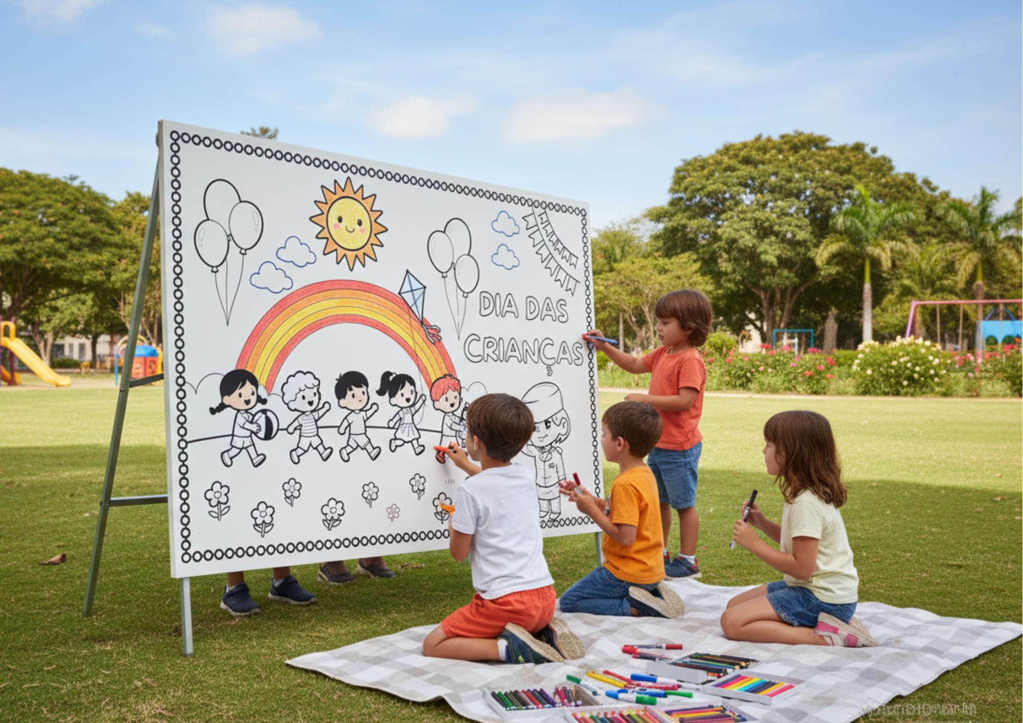 ✨ Ser criança é transformar qualquer momento em felicidade! ✨ 🎨 Apresentamos o lindo painel para colorir: uma atividade divertida, criativa e cheia de cores para os pequenos!