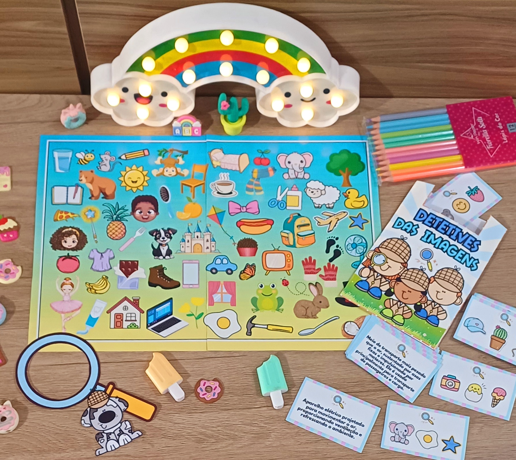 Recurso pedagógico de percepção e o raciocínio lógico que trabalha ao mesmo tempo a leitura, escrita e a associação de figuras.