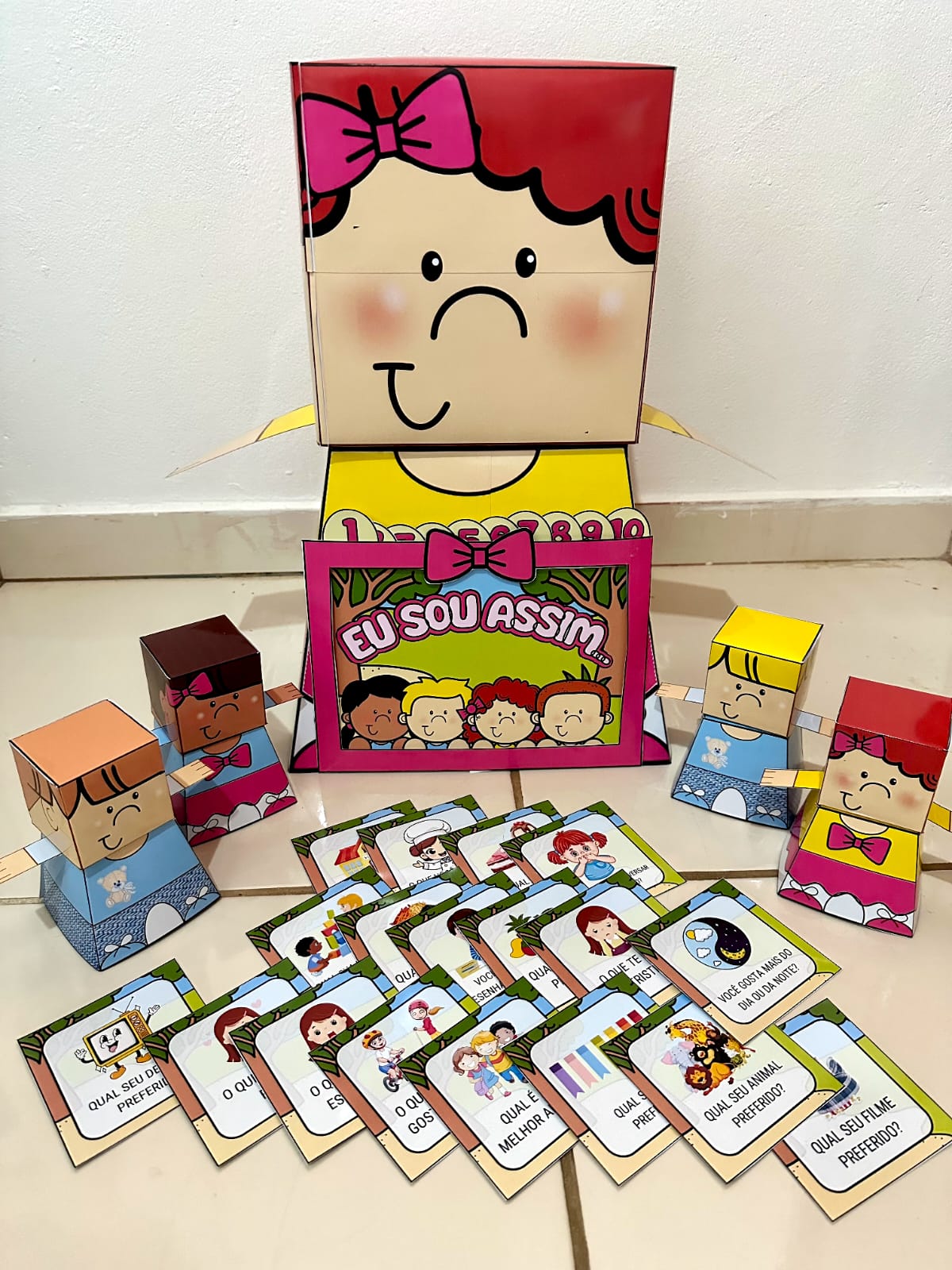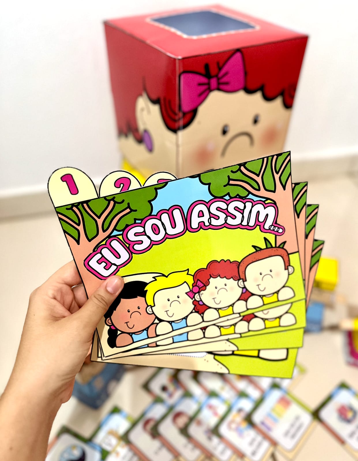 Essa proposta trabalha identidade e respeito às diferenças e também é uma excelente oportunidade para as crianças se apresentarem para os colegas e para a professora no primeiro dia de aula. O kit inclui: 📍 Boneca gigante (43 cm de altura e 28 cm de largura); 📍 História interativa; 📍 Fichas para dinâmica de apresentação; 📍 Personagens 3D (12 cm de altura e 7cm de largura).