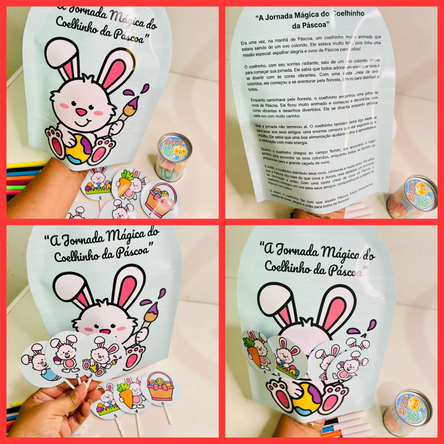 História na Luva – da Páscoa ”A Jornada Mágica do Coelhinho" Este arquivo digital traz uma história encantadora e interativa sobre o coelhinho da Páscoa, ideal para divertir e educar as crianças. Com ilustrações coloridas para colorir e atividades divertidas, ele é perfeito para tornar a celebração da Páscoa ainda mais especial.