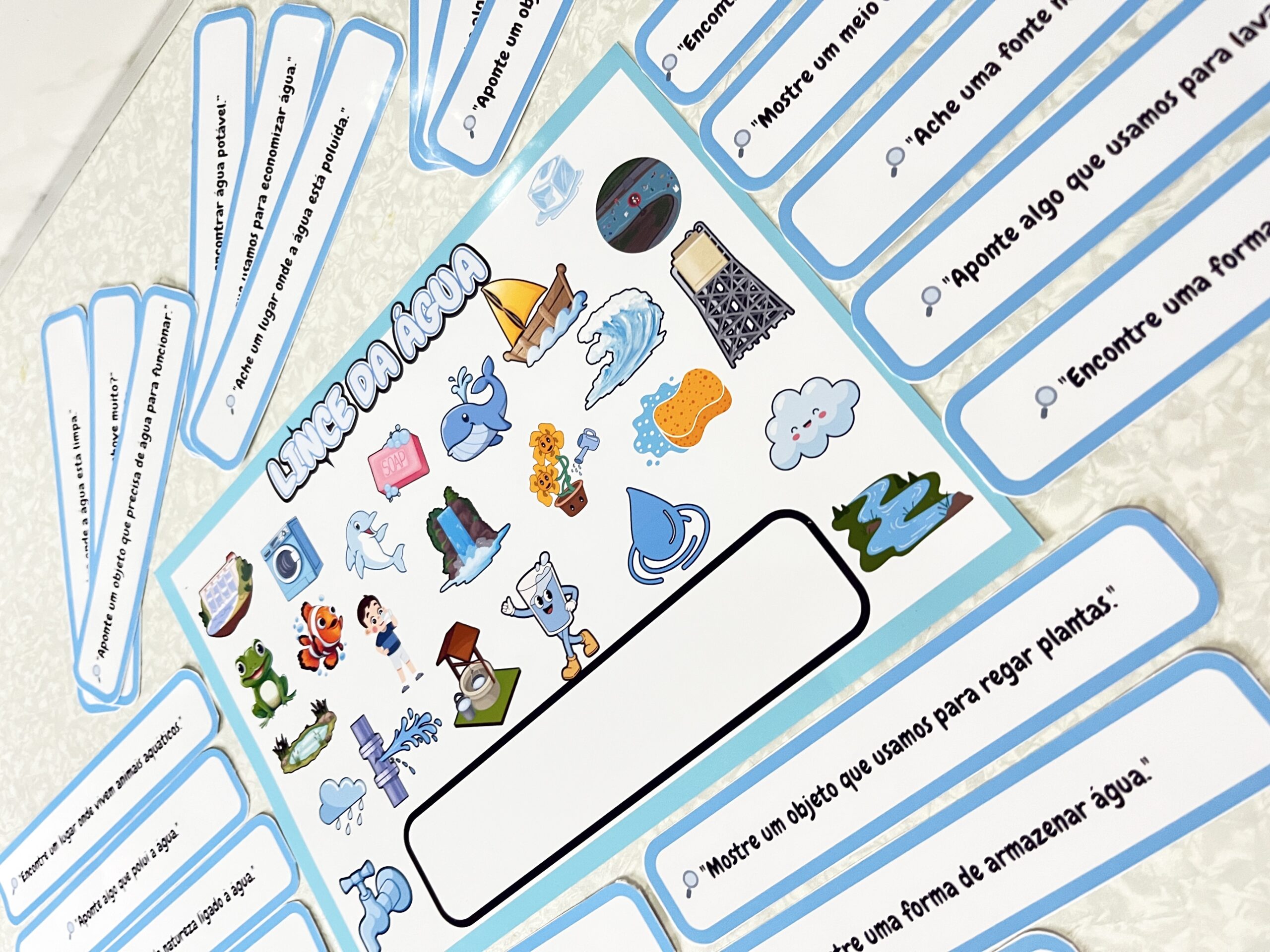 🌊JOGO DO LINCE – DIA DA ÁGUA💦 🚀 Transforme a aprendizagem em diversão com o Jogo do Lince da Água! 🌍💙 Você quer ensinar às crianças sobre a importância da água de forma lúdica e interativa? Então este jogo é perfeito! ✅ 25 imagens coloridas sobre o tema água. ✅ 25 desafios divertidos para estimular a percepção e o aprendizado. ✅ Ideal para escolas, projetos ambientais e atividades educativas. 🧠 As crianças vão aprender brincando! Elas desenvolverão atenção, raciocínio rápido e consciência ambiental enquanto se divertem encontrando as imagens no tabuleiro! 🔥 Garanta já seu Jogo do Lince – Dia da Água e leve a conscientização para a sala de aula de um jeito divertido! 🌿