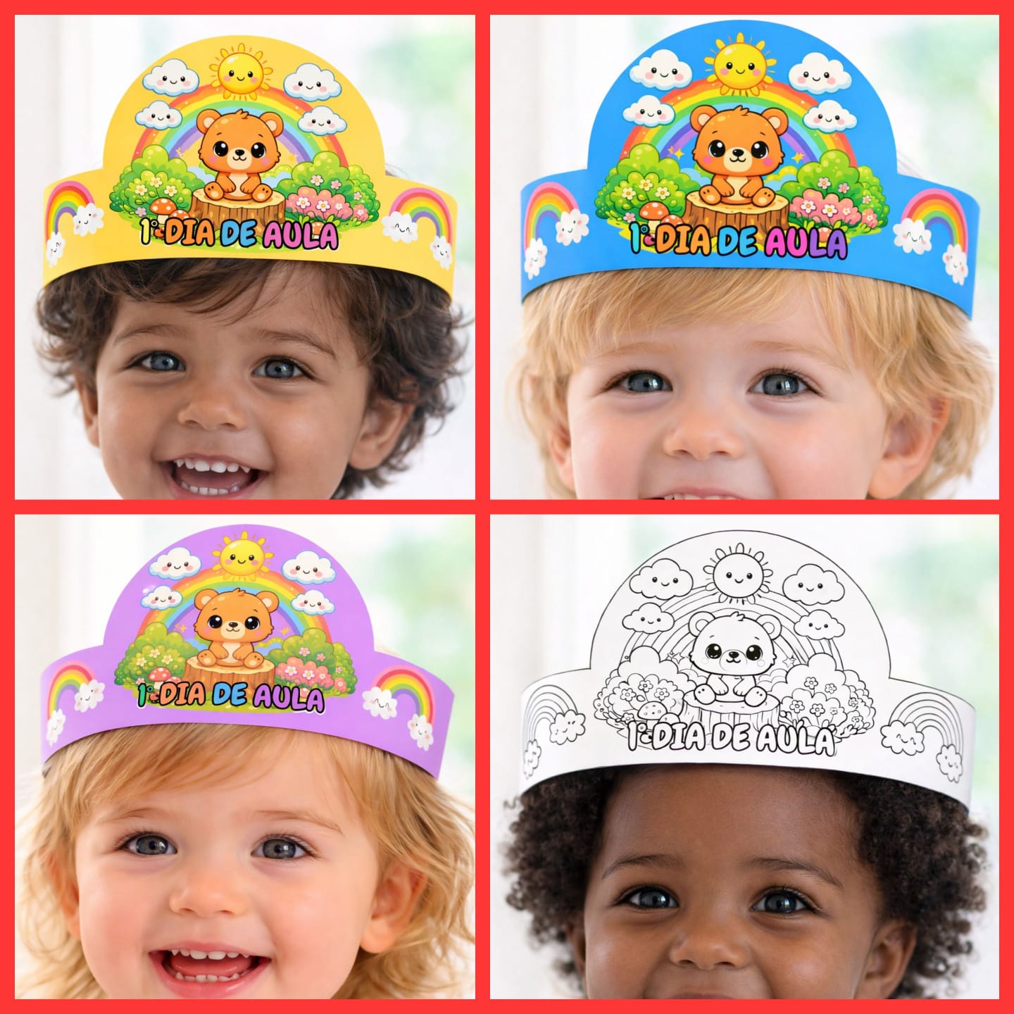 ✔ Coroa do 1º dia de aula (várias cores) e para colorir