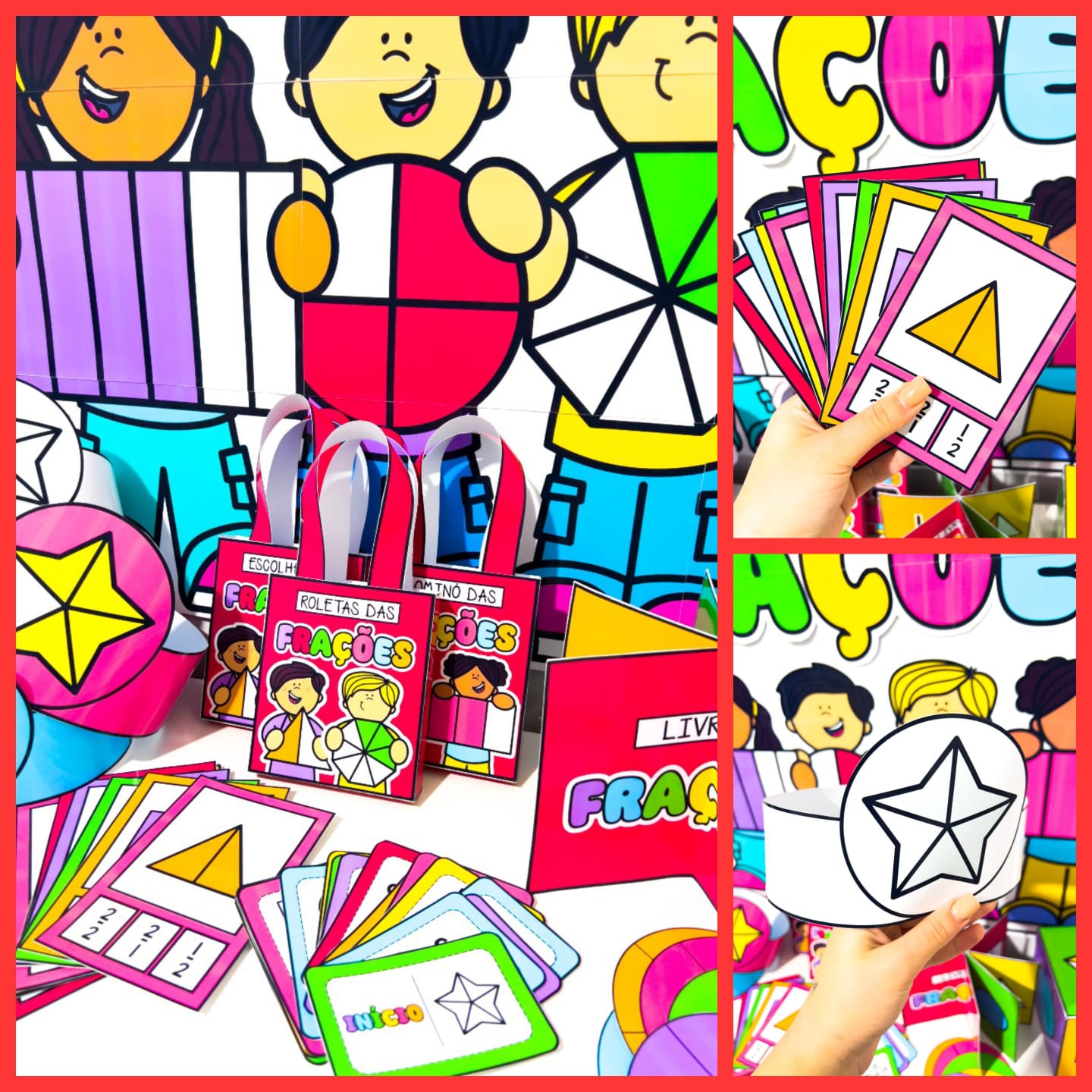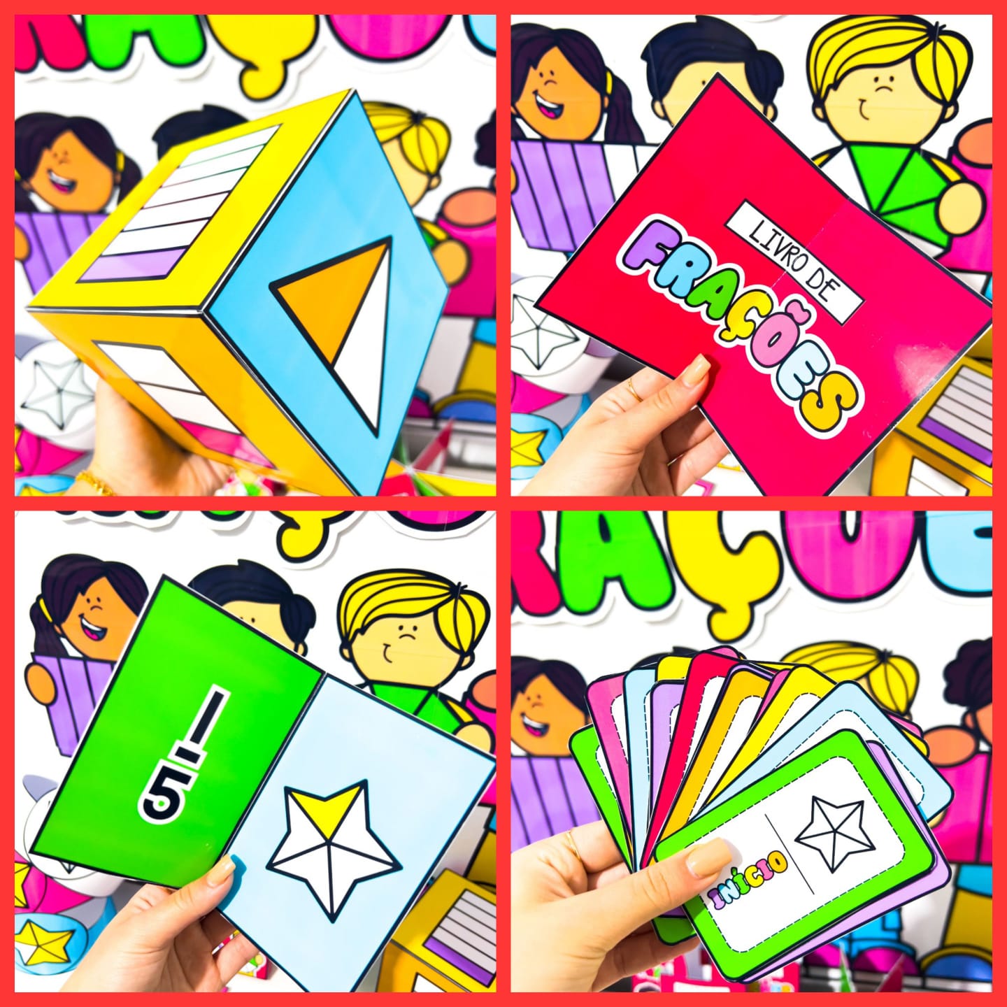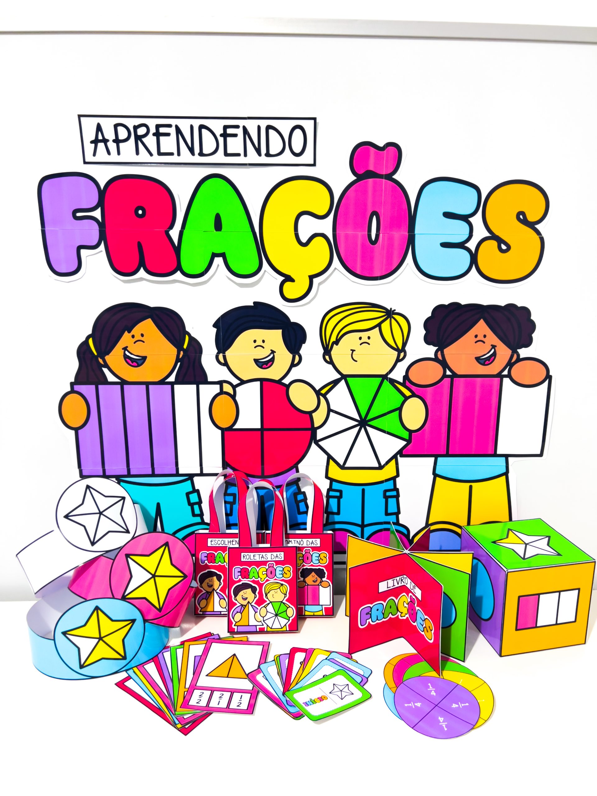 O Kit Aprendendo Frações é um recurso pedagógico lúdico e colorido desenvolvido para auxiliar as crianças no processo de introdução ao conceito de frações. Trabalhando denominadores até 6, o material possibilita a compreensão prática e visual dessa noção matemática de forma divertida. O kit é composto por: ⭐ Painel ilustrado para decorar sua aula; ⭐ Sacolinhas organizadoras para armazenar fichas de atividades; ⭐ Jogos interativos como dominó e escolha a fração; ⭐ Roletas das frações que estimulam a observação e o raciocínio; ⭐ Dado temático para dinâmicas em grupo; ⭐ Figuras coloridas e para colorir, que permitem a associação das frações com formas geométricas. ⭐Com cores vibrantes e atividades variadas, o Kit Aprendendo Frações transforma o aprendizado em uma experiência envolvente, incentivando a participação, a atenção e o desenvolvimento do raciocínio lógico matemático.