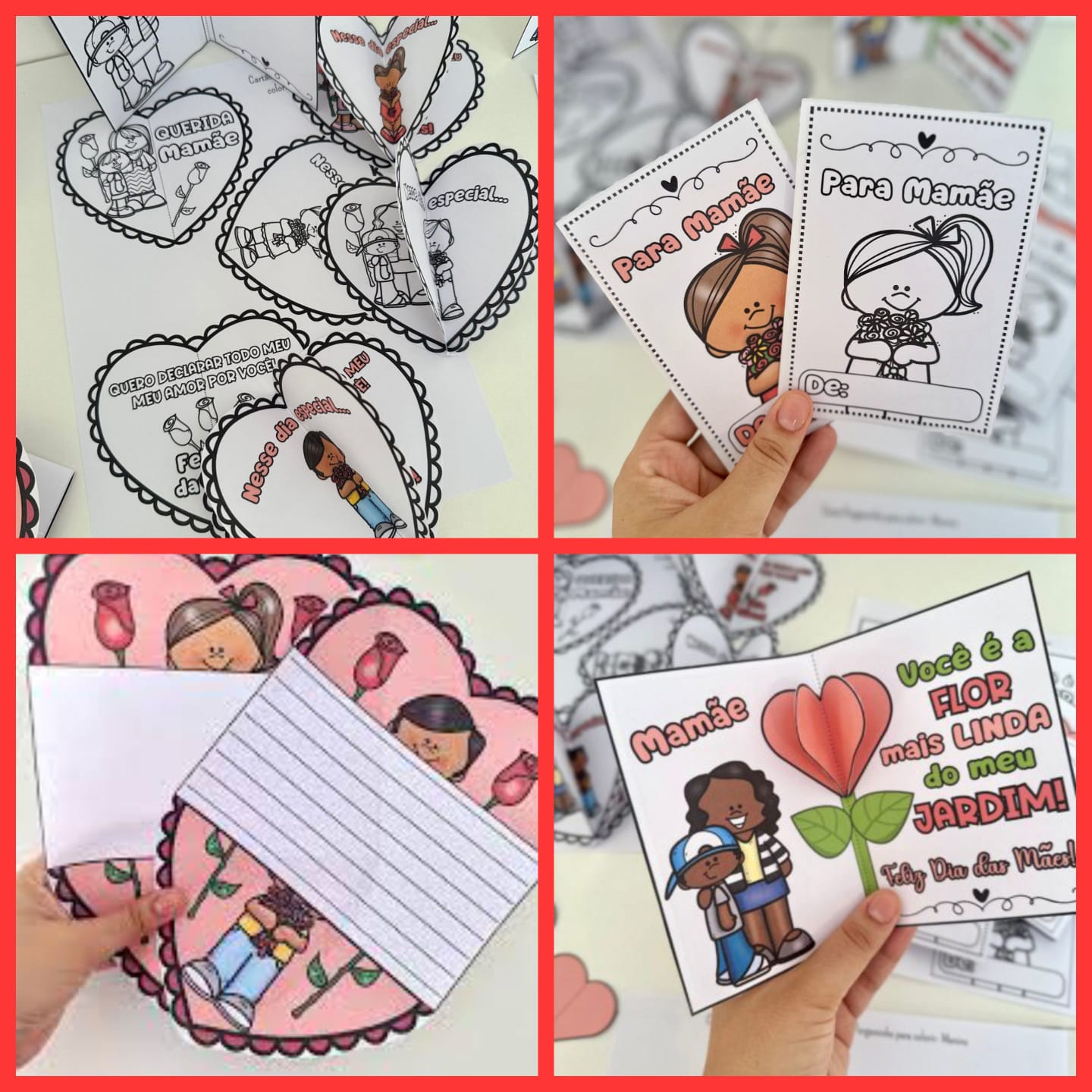 💗Kit Cartões Dia das Mães para Educação Infantil e séries iniciais do Ensino Fundamental. O arquivo vai em PDF com imagens em alta qualidade, pronto para impressão.