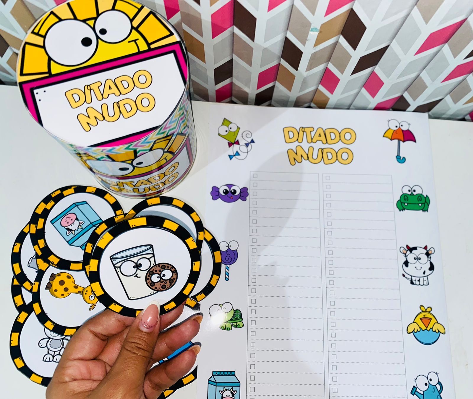 O Ditado é a atividade onde a criança escreve e tenta nomear objetos, faz ela