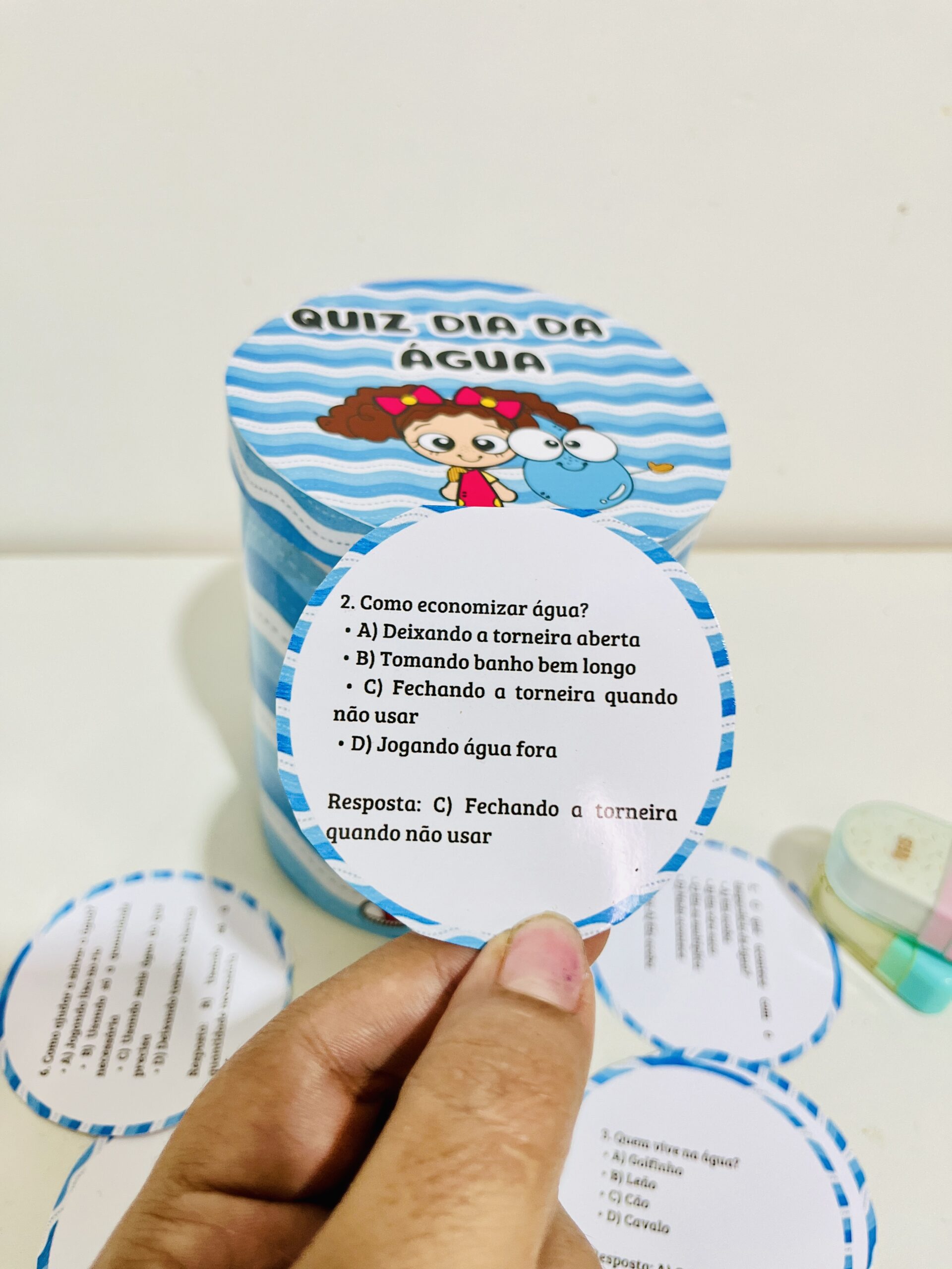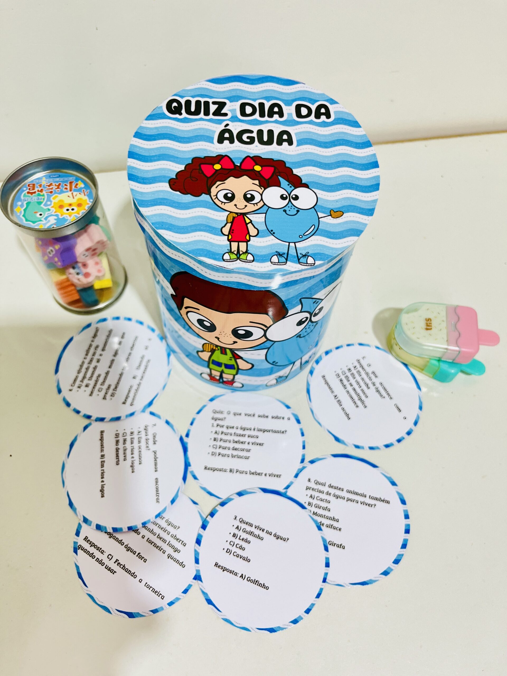 Celebre o Dia da Água com nosso quiz de sobre a importância e preservação da água. Ideal para escolas, empresas e campanhas de conscientização. Este recurso posaui: 📍 32 perguntas com respostas; 📍 Arte para lata. 📂 Arquivo em PDF não editável. 🖨 Pronto para imprimir.