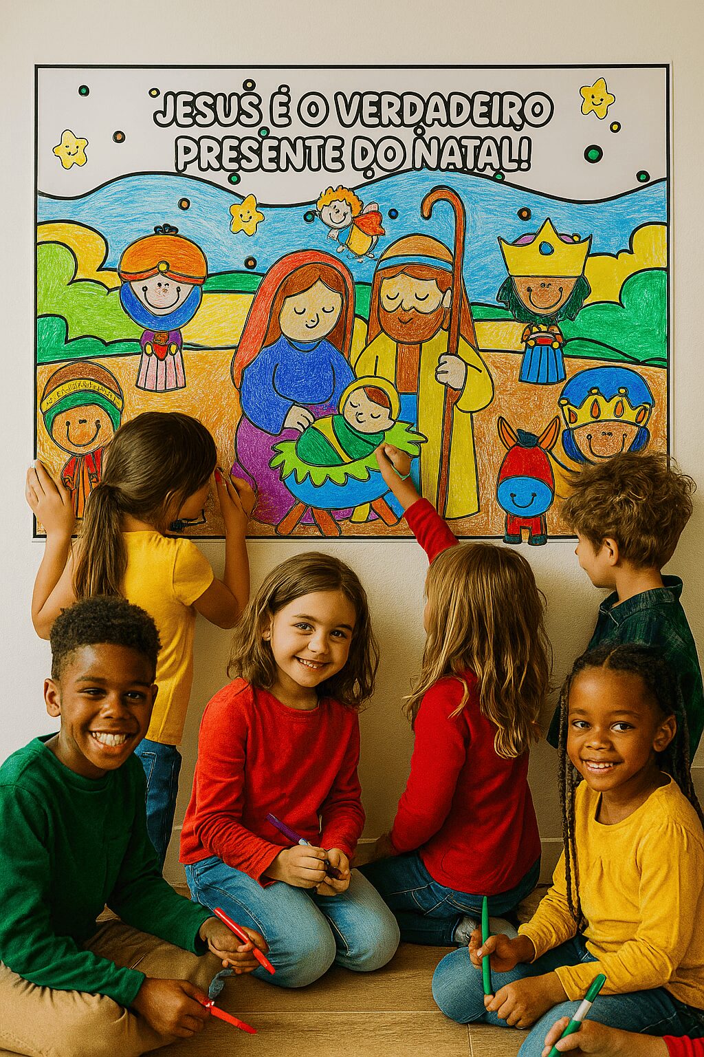 🎅✨ PAINEL PINTURA COLETIVA + FOLHINHA A4 NATAL – NASCIMENTO DE JESUS ✨🌟 💖 Um momento especial para vivenciar o verdadeiro sentido do Natal: o amor, a união e o nascimento de Jesus! As crianças vão amar participar dessa pintura coletiva, repleta de cores, alegria e espiritualidade. 🎨🙏 📄 Detalhes: - 18 páginas - Tamanho: 1,14 x 0,81 m - Também disponível no tamanho A4