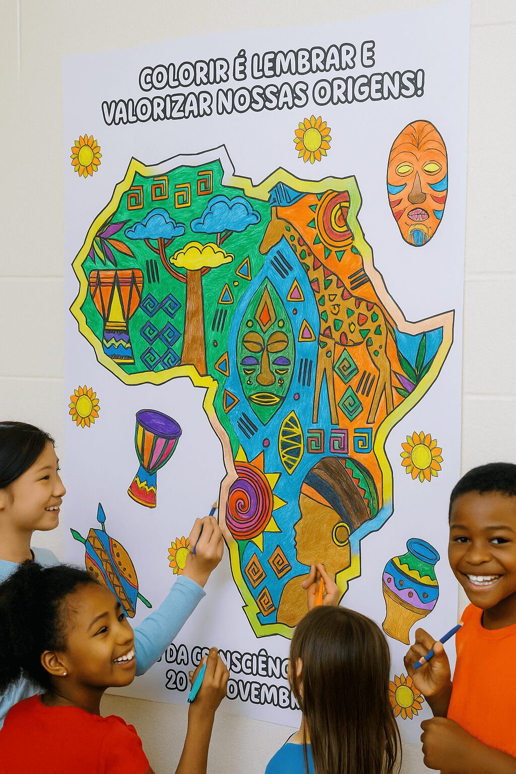 ✨🖤 PAINEL PINTURA COLETIVA + FOLHINHA A4 CONSCIÊNCIA NEGRA 🖤✨ 🎨 Uma atividade cheia de significado para trabalhar a valorização da cultura afro-brasileira, a representatividade e o respeito às diferenças! Perfeito para projetos escolares, murais temáticos e momentos de arte coletiva com os alunos. 🌍🤎 📄 Detalhes: - 16 páginas - Tamanho: 0,76 x 1,08 m - Também disponível no tamanho A4 - Arquivo em PDF