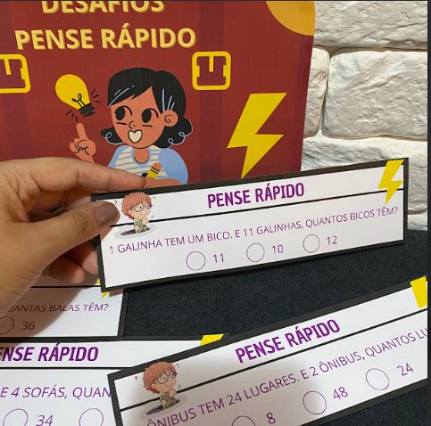 Esse jogo"Pense Rápido" é uma ferramenta pedagógica valiosa para o desenvolvimento de habilidades matemáticas em crianças. O arquivo vai com 20 desafios para a criança assinalar a resposta correta.Arquivo em PDF.