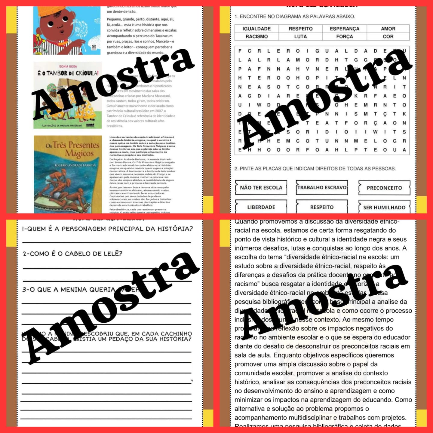 🌟 Material contém: ✅ Resumo ✅ Justificativa ✅ Objetivos ✅ Diagnósticos ✅ Planejamento de Atividades ✅ Avaliação ✅ Tudo sobre étnico-racial ✅ Cidadania/ relação étnicas racionais ✅ BNCC ✅ Sugestões de livros ✅ Livro " O cabelo de lelê" ✅ Atividades de interpretação ✅ Textos ✅ História " A gente é diferente" ✅ Páginas para anotações do professor ✅ São 78 páginas ao todo