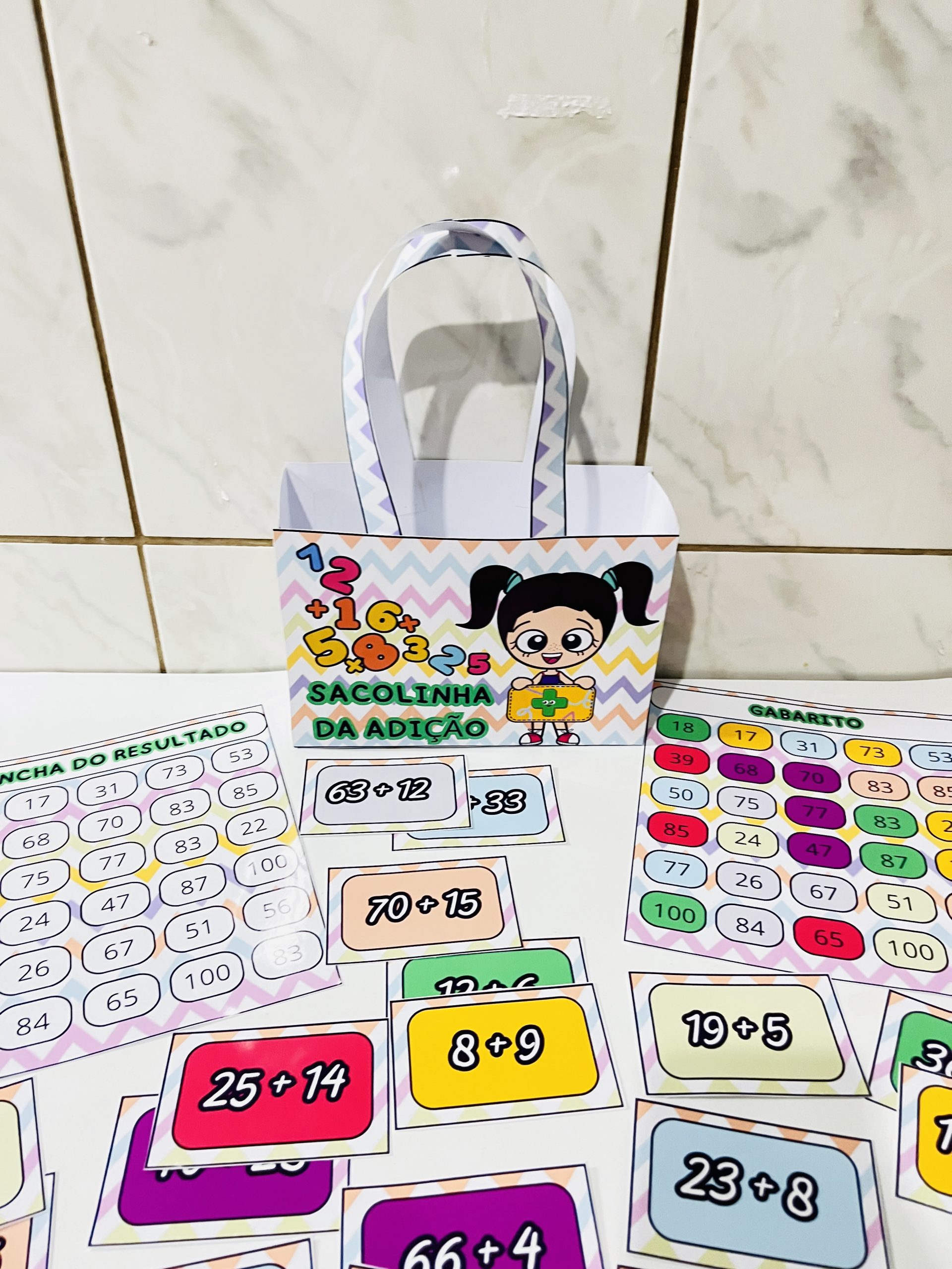 🎒➕ SACOLINHA DA ADIÇÃO DIVERTIDA – SOMAR NUNCA FOI TÃO COLORIDO! 🌈✏️ Transforme o aprendizado da adição em uma atividade lúdica, criativa e cheia de cor! Com a nossa Sacolinha Decorada da Adição, as crianças vão sortear os cards, resolver os cálculos e pintar a prancha de resultados com a cor correspondente a cada conta! 📦 O que vem na sacolinha: ✅ 30 cards de adição, cada um com uma cor diferente ✅ Prancha de resultados para colorir conforme a resposta ✅ Embalagem temática pronta para encantar ✅ Ideal para trabalhar cálculo mental de forma divertida! 🎯 Estimula: raciocínio lógico, atenção, associação de cores e concentração! 💡 Perfeita para uso em sala de aula, reforço escolar ou como lembrancinha pedagógica. 🛍 Garanta já a sua! Aprender somando nunca foi tão divertido!