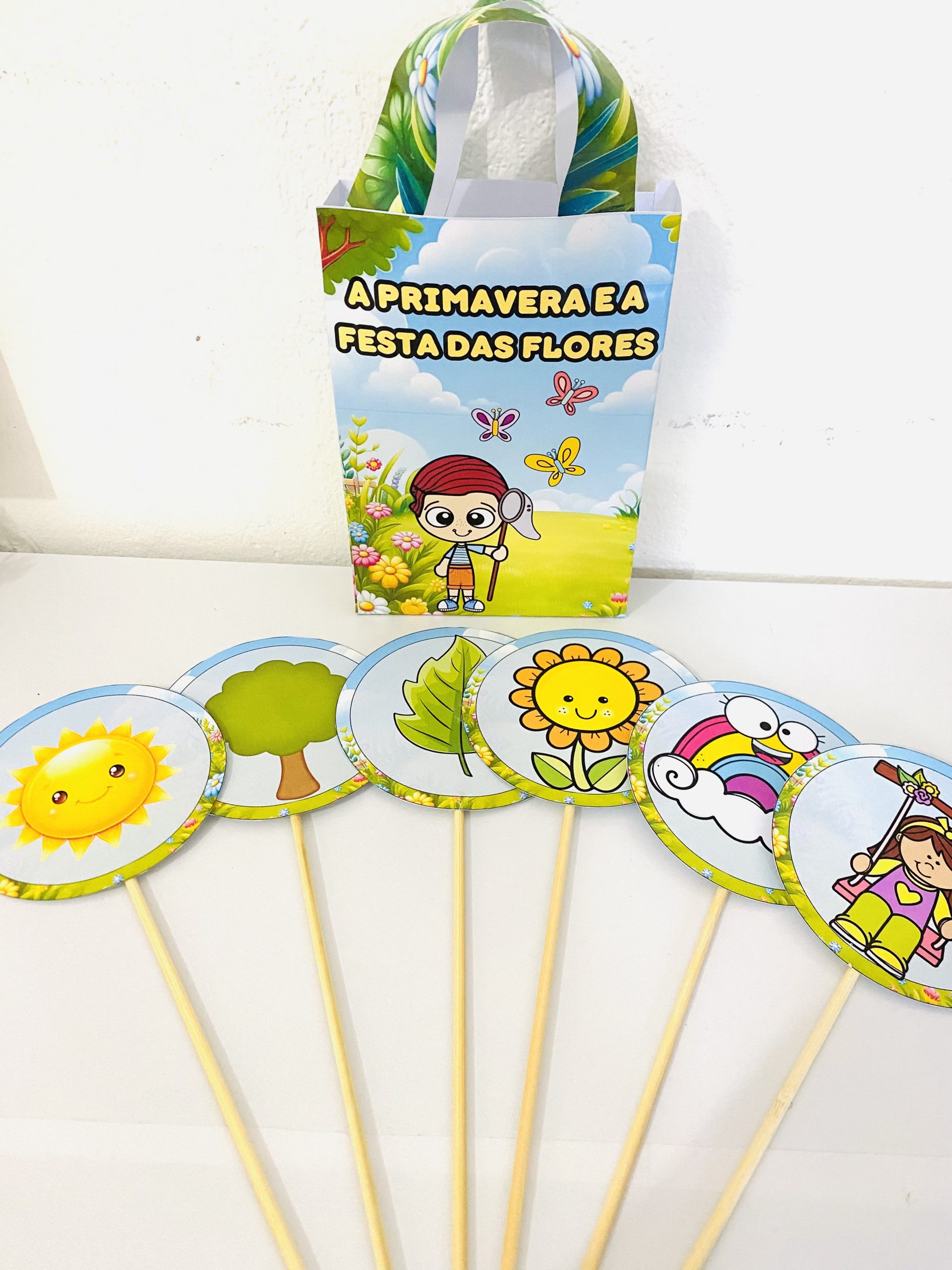 🌼✨ *Sacola Teatral Primavera e Festa das Flores*✨🌼 Entre na magia da primavera com nossa sacola super colorida! 🌸🌈 Com os palitoches, você pode contar histórias encantadoras e trazer a festa das flores para a sua casa. Deixe a criatividade florescer! 🌷🎉