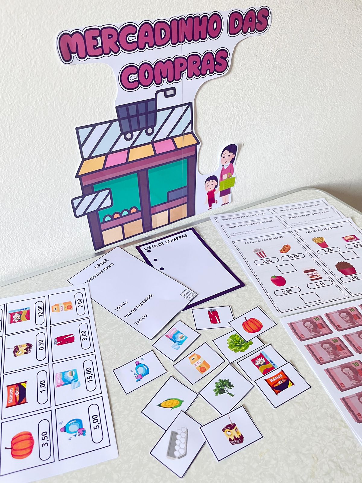 🔹 Painel Ilustrativo: Construa um cenário de mercado completo para envolver as crianças.