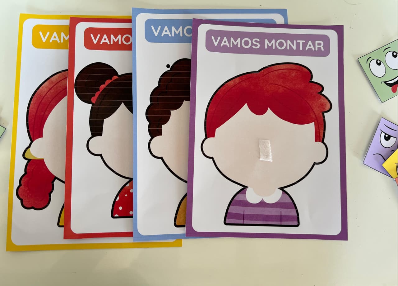 Você tambpem recebe carinhas para colocar nos rostos dos desenhos, tornando a atividade ainda mais interativa e divertida!
