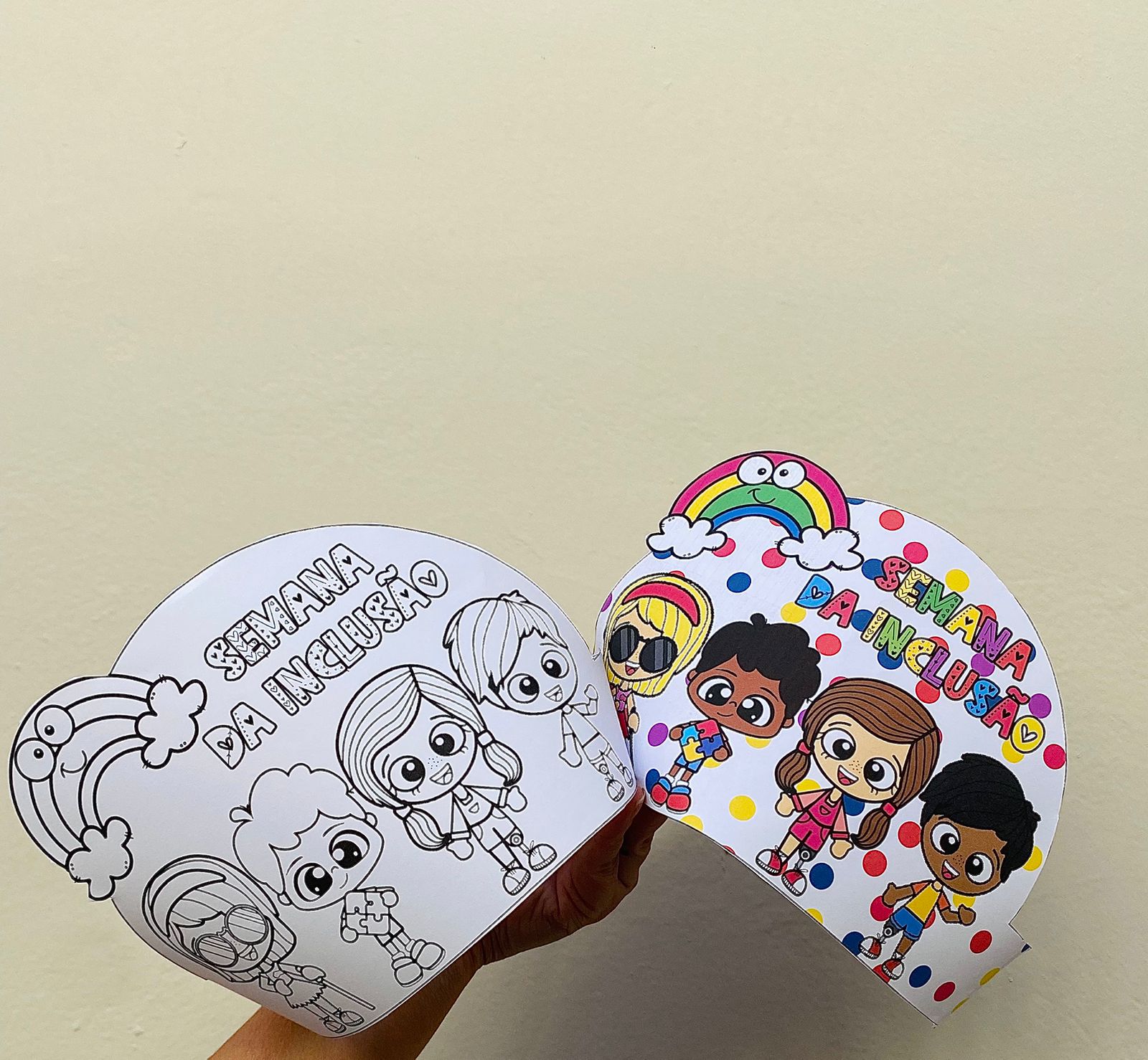 Incentive a empatia e celebre a diversidade com essas viseiras pedagógicas encantadoras! 🥰 Disponíveis em versão colorida e para colorir, são ideais para trabalhar a Semana da Inclusão de forma lúdica, criativa e acolhedora. ✨ 📄 Contém: - 2 páginas (viseira colorida + viseira para colorir); - Arquivo digital em PDF pronto para impressão; - Atividade interativa para crianças. 💡 Perfeito para escolas, projetos sociais e eventos educativos, promovendo a mensagem de que somos todos iguais nas diferenças!